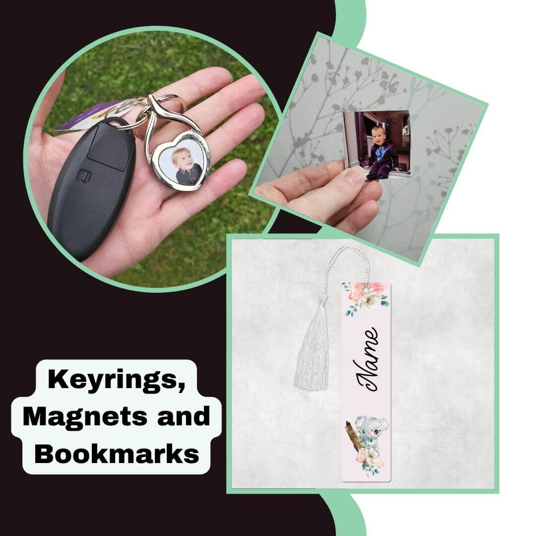 Explore our collection of personalised keyrings, fridge magnets, and bookmarks, perfect for...