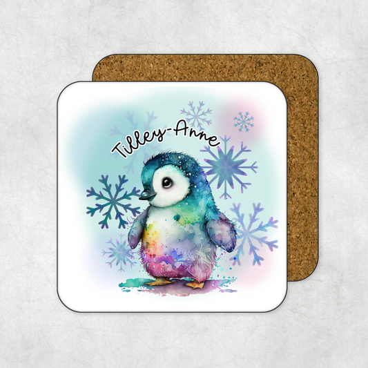 Rainbow Penguin Coaster – Personalised Gift for Penguin Lovers