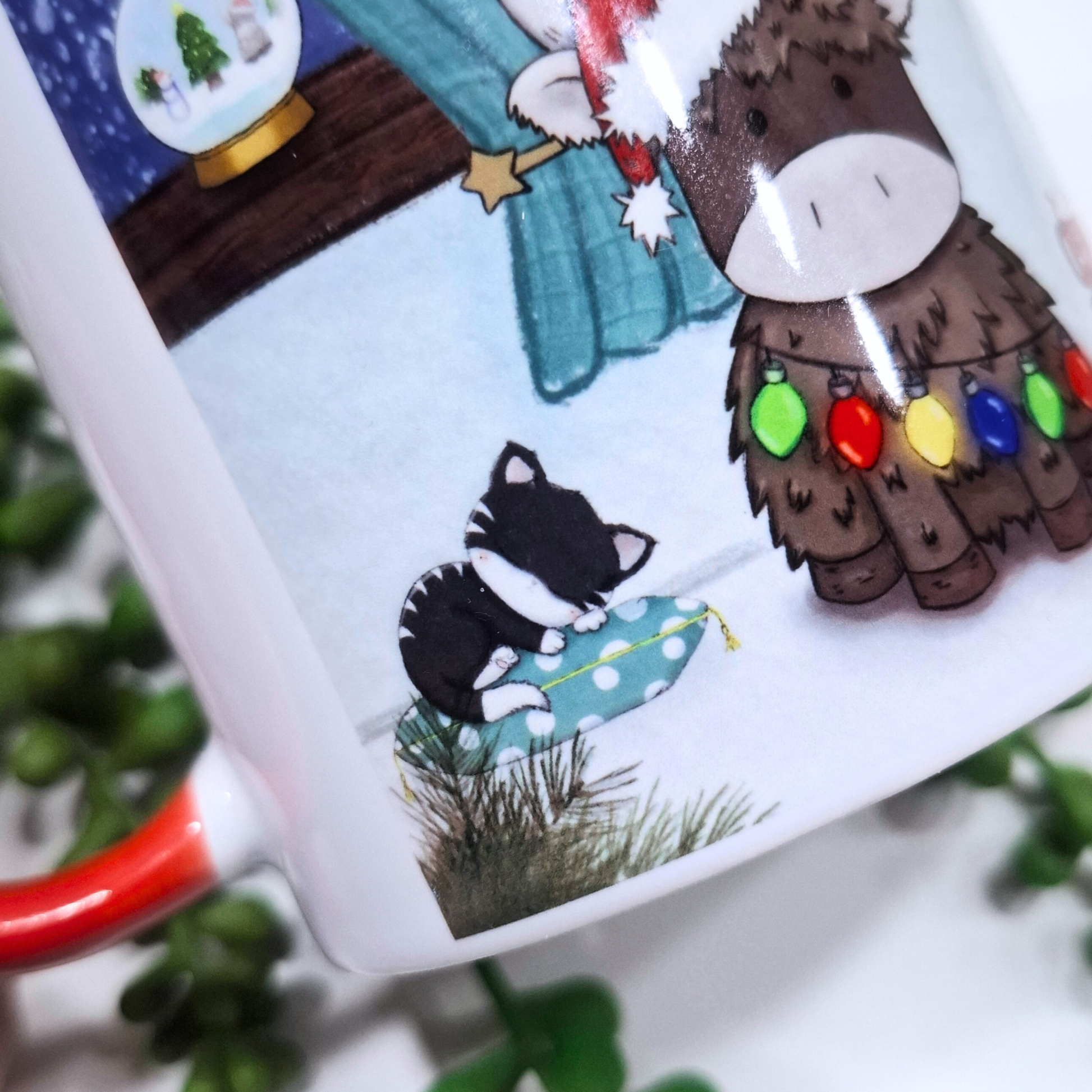 Get cosy this Christmas with the Highland Cow by the Fireplace mug! Featuring my own hand-drawn Highland Cow wrapped in twinkling lights beside the tree, this festive scene is perfect for your winter warmers — from hot chocolate to your morning cuppa.