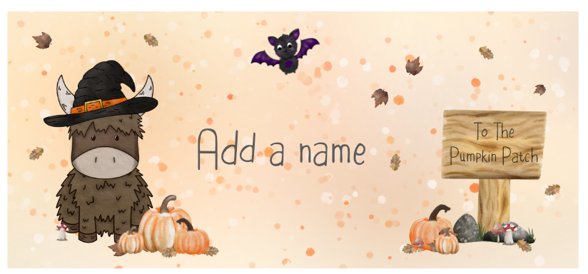 Featuring my own hand-drawn Highland Cow dressed for spooky season!