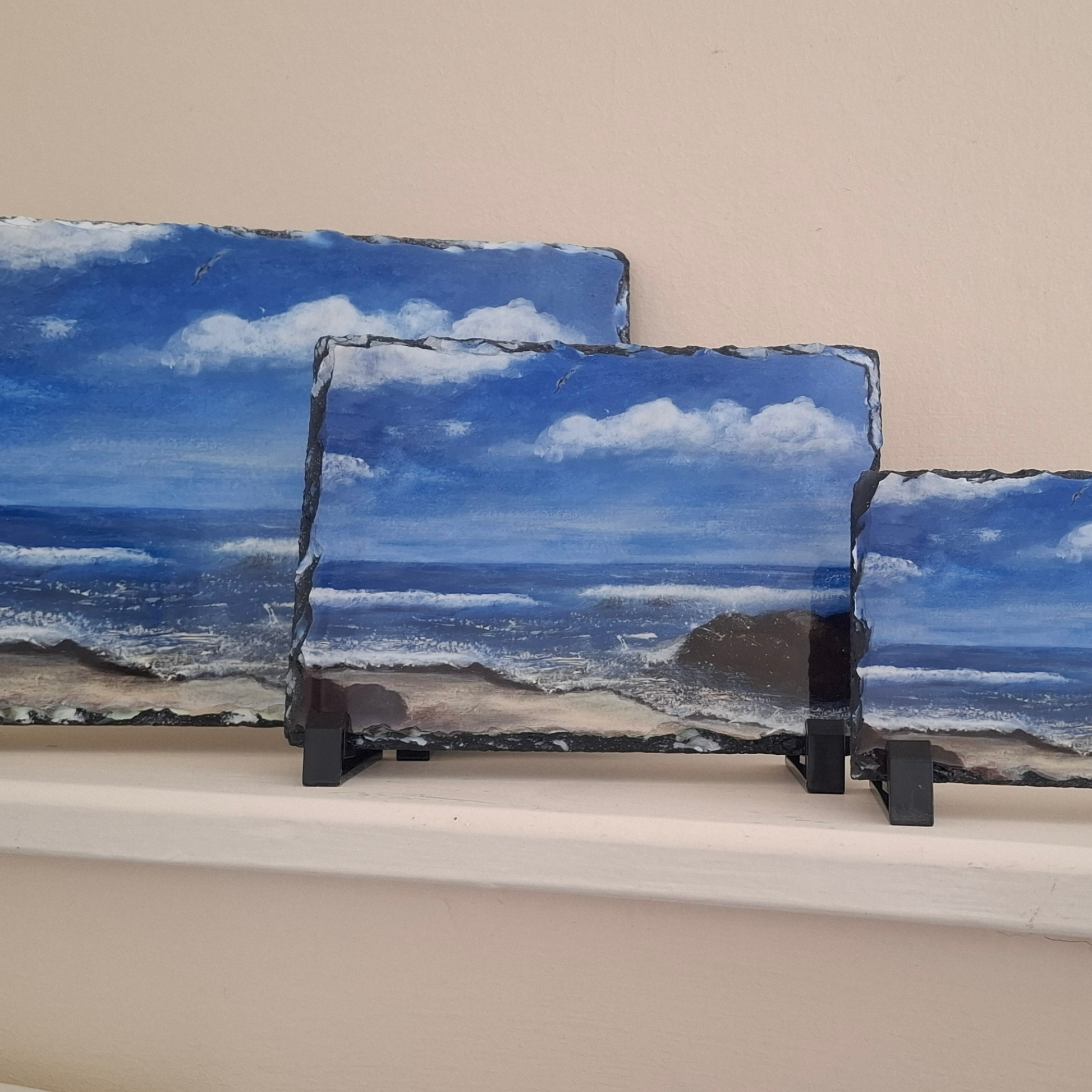Each design begins as a hand-painted canvas created by Sea & Still Art. The artwork is then carefully digitised to preserve the detail and colour, before being professionally printed onto natural slate.